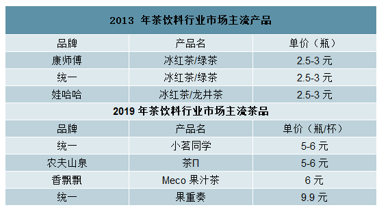 2013、 2019 年茶饮料主流产品价格对比