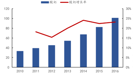 中国酸奶人均消费量低于世界平均水平,渗透率将进一步提高。据数据,2016 年我国人均酸奶消费量 11.18 美元,远低于日本 68.52 美元以及美国和香港,这也表明中国酸奶市场发展潜力巨大。预计中国该数据未来五年会以年14%增速增长。
