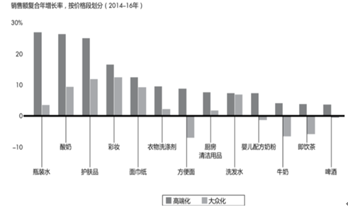 随着消费者收入递增,酸奶市场高端化产品增长迅速。酸奶市场高端化产品销售额增长速度高达 28%,而大众化酸奶产品销售额仅为 7%。未来可预计高端化酸奶(例如天润等)发展前景可期。