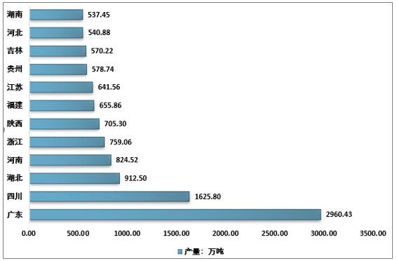 | 省份 | 2017年产量:吨 | 省份 | 2018年产量:吨 |