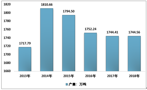 2013-2018年中国碳酸型饮料(汽水)产量走势