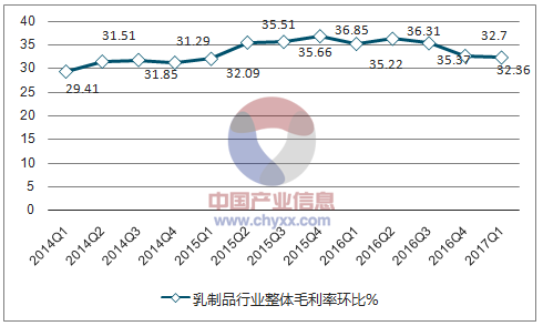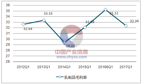 成本的上涨对乳制品行业的整体毛利率水平呈现出一定的负面影响,其中2016Q4 和2017Q1 的毛利率均在32%以上,分别同比下降了4.15%和2.86%。虽然国内原奶价格仍处于底部温和复苏的状态,但是我们预计全脂奶粉、包材等成本的上升会对乳制品行业的全年毛利率形成压力。