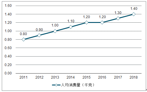 2018年,国内市场茶叶销售额增至2661.0亿元,涨幅为13.0%,销售单价为139.3元/斤,同比增长7.9%;茶叶消费量达191.1万吨,增幅5.2%。茶叶内销量每年持续增长,内部市场较为稳定。