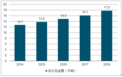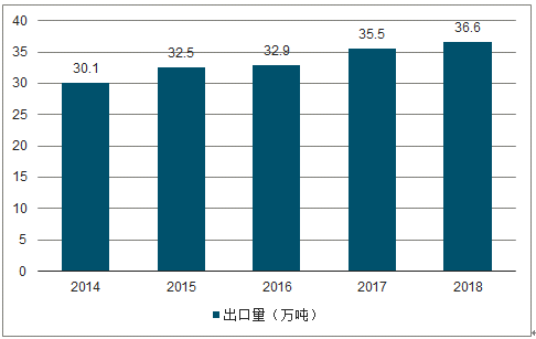 数据显示,2014-2018年,中国茶叶出口量稳中略增,从2014年的30.1万吨增长到了2018年的36.6万吨。