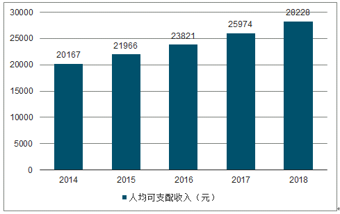据数据显示,2014-2018年,中国居民人均可支配收入稳步增长。2018年人均可支配收入达到28228.0元,相比于2017年的25974.0元,增长了6.5居民消费水平不断上升,预计这一趋势将在未来继续保持,居民将拥有更强的消费能力。