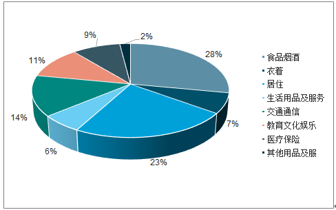 食品烟酒是中国居民人均消费支出最多的部分,占比为28.0%,金额为5631.0元,作为饮食用品的茶叶,消费市场潜力巨大。综合来看,国内茶叶市场的发展空间较为乐观。
