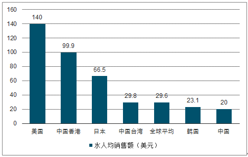 目前我国瓶装水人均消费仍远低于世界其他国家,未来瓶装水销量与销售额均存在较大提升空间。从销售额看,18 年我国瓶装水人均销售额为 20 美元,低于全球平均的 29.6 美元,同期同属亚洲的日本、韩国、香港地区、台湾地区瓶装水人均消费额分别达到 66.5 美元、23.1 美元、99.9 美元和 29.8 美元。 从销售量看,18 年我国瓶装水人均销量为 32.1 升(按照 550ml/瓶计算,约合 116.7 瓶,日均仅 0.3 瓶),仅高于中国台湾(19.7 升),低于全球平均(43.9 升),也低于美国(129.6 升)、日本(66.5 升)、韩国(58.0 升)和中国香港(55.2 升)。对标可比国家和地区,我国瓶装水消费存在巨大的增长潜力。