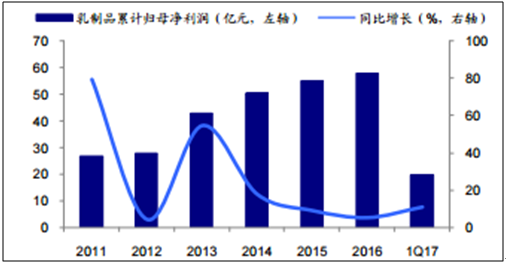 2016 年乳制品上市公司归母净利润同比增 5.0%