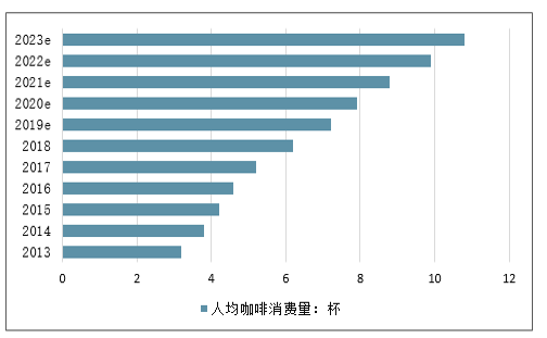 2013-2023年中国咖啡市场人均消费趋势预测