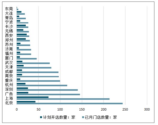截至2018年12月中旬,瑞幸咖啡在全国22 座城市门店数量接近1650 家,门店数量是2 月份60 家的28 倍。其中,北京、上海、广州、深圳、杭州和重庆六大城市的已有门店数量超过100家。预计2018 年,瑞幸咖啡门店将达到2000 家。