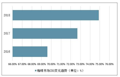 2015-2018年中国咖啡市场CR5变化趋势(单位:%)