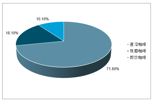 目前,从我国咖啡行业目前的竞争格局来看,速溶咖啡依然占据中国咖啡市场,市场占比高达71.8%;现磨咖啡位居第二,市场占比约为18.1%,即饮咖啡位居第三,市场占比约为10.1%。