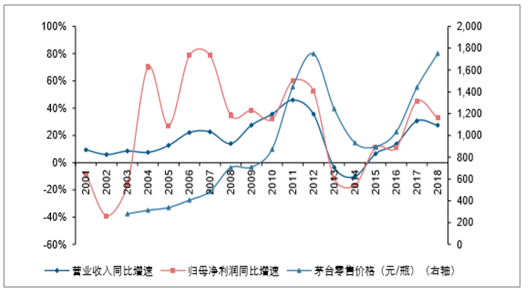 白酒行业营业收入、利润同比增速和茅台零售价格关系