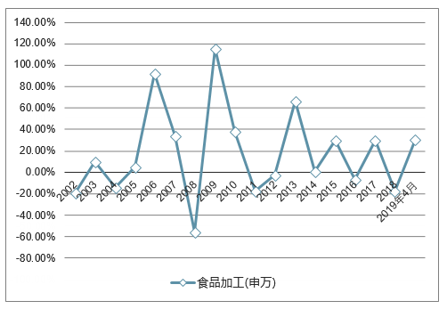 扩容式增长阶段:顾名思义就是有产品不愁卖,市场容量不断扩大。研究食品行业有两个节点,1978年作为一个研究节点,1978年的食品工业产值是400多亿,有的人喜欢从1992年开始研究,92年是食品工业产值是3044亿。当时正好中国打开国门引进国外的机器设备。