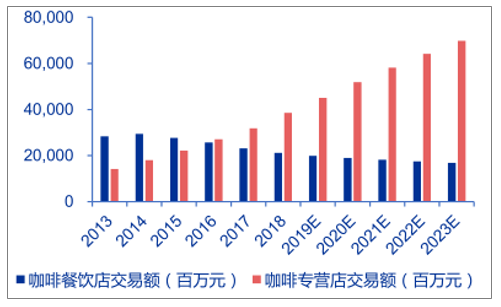而伴随咖啡消费的普及(文化不适应于快节奏城市生活),更具品质优势的专营品牌越来越受到国人的青睐。2016年咖啡专营品牌的成交额已超过了咖啡餐食品牌,2018年又实现了店铺数量的超越。预计至2023年,专营品牌将占据超过80%的市场份额。