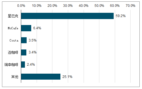 中国咖啡行业集中度高,海外品牌占据市场主导。横向对比国外,中国咖啡市场集中度较高,2018年CR5达到74.9%,纵向也呈现逐渐集中的趋势。海外品牌如星巴克、Costa由于进入中国市场早,品牌影响力大,在中国现磨咖啡市场中仍占绝对主导。2018年星巴克市场份额达到59.2%,近几年在高基数水平上一直保持稳定增长。