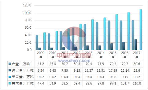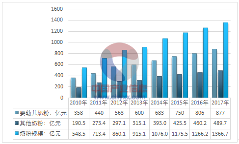 2010-2017年中国婴幼儿奶粉行业市场容量情况