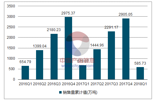 2018年Q1中国乳制品销量累计达585.73万吨,产销率同比下降0.8%,库存比年初增长2.8%;2017年中国乳制品销量累计达2905.05万吨,产销率同比下降0.8%,库存比年初增长31.9%。