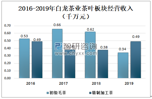 2016-2019年白龙茶叶茶叶板块经营收入(千万元)