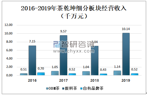 2016-2019年茶乾坤细分板块经营收入(千万元)