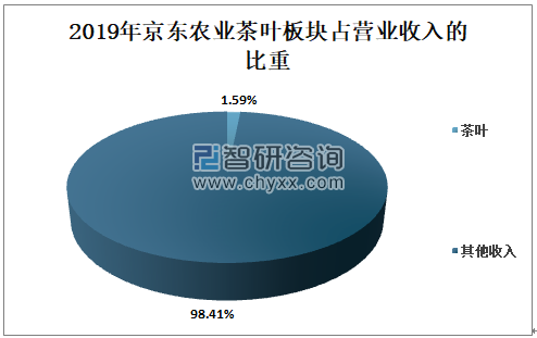 2019年京东农业茶叶板块占营业收入的比重非常小,仅占比1.59%,其他收入占比达到了98.41%。