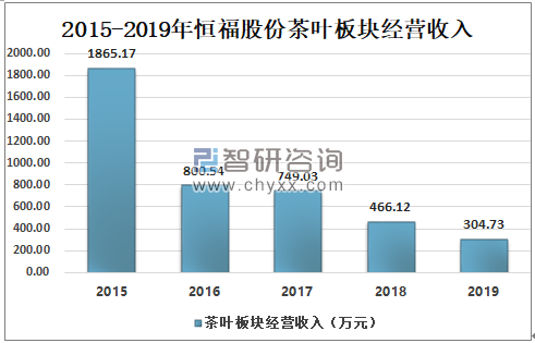 2015-2019年恒福股份茶叶板块经营收入依次下降,2018年恒福股份茶叶板块经营收入466.12万元,2019年恒福股份茶叶板块经营收入304.73万元,较2018年减少了161.39万元。