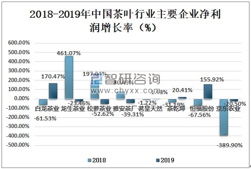 2018-2019年中国茶叶行业主要企业净利润增长率(%)