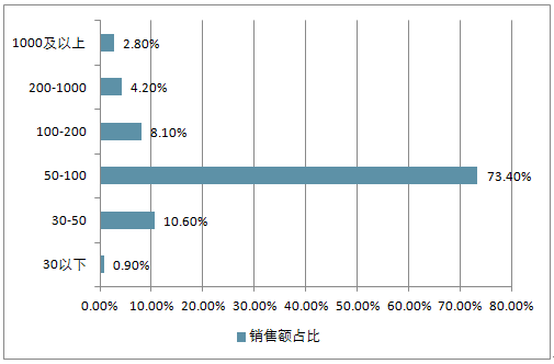 价格带在 50-100 之间的销售额占比最高,达 73.4%。 而 100 元以上的高端奶经过过去几年的高速增长后,近年稳定下来, top3 品牌地位稳固,龙头企业的品牌占据了市场上的大部分规模,挤压了一部分小、散企业的生存空间,