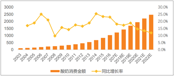 随着未来三四线城市冷链等设施的完善, 高端低温酸奶或许能够复制常温酸奶替代白奶的路径,迎来再次的增长。到 2020 年低温酸奶的市场规模将超过常温酸奶的市场规模。