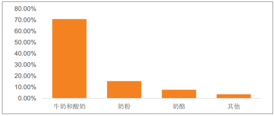 在我国成年人奶制品食用种类的分析中可以看出, 牛奶和酸奶占了近 70%, 可以看出,国民用奶种类过于单一,而产品更加丰富的酸奶有望继续深受喜爱。