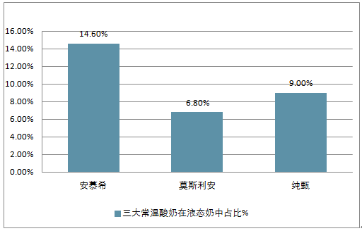 到 2017 年伊利的安慕希占有常温酸奶最大的市场规模,在液态奶中占比达14.6%,蒙牛的纯甄占 9%,光明莫斯利安占 6.8%。 常温酸奶市场形成了安慕希---纯甄----莫斯利安的格局。