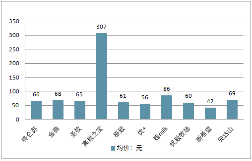 通过 2016 中国奶业质量报告可以看出,我国乳制品食用频率依旧很低, 至少 55.1%的中国人不能保证每天食用奶及奶制品, 58.7%的中国人每日食用奶制品量不足 300g。此外,虽有近半数国人能够“高频食用”,但进一步分析发现,该部分高频食用人群中仅 22.3%的日常奶制品食用量达标,通过各国膳食指南对成年人奶制品的建议摄入量来看,我国推荐量大大低于欧美国家。 一方面是人均消费量低,提升空间大,另一方面却是乳制品售价偏高。通过对 1 号店同规格产品 14 年到 17 年的零售价可以发现各品牌纯奶的价格均有所提升(高端奶除外)。