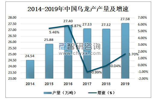 2014-2019年中国乌龙产产量及增速