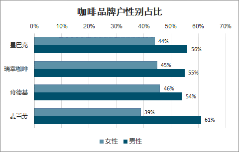 咖啡品牌用户性别整体表现为男性高于女性,其中麦当劳用户男性较多,占比超过6成;瑞幸咖啡用户年龄层相对较低,集中在30岁以内的90后用户,或与其定价策略相关,比较适合学生群体和初入职场人群;星巴克或因为其售价相对较高,25岁以下用户则占比最低。