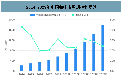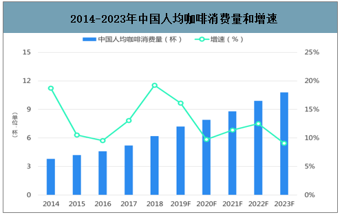 随着中国咖啡消费市场的打开,以及咖啡消费群体由一线城市向新一线、二线、三线等城市扩展,未来中国咖啡市场规模或将连续4年实现20%以上的增长速度;中国咖啡消费习惯尚在培育之中,未来将在咖啡门店更多覆盖的趋势下,部分消费者有可能形成咖啡消费的忠实用户,预计2023年中国人均咖啡消费超过10杯。