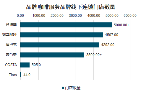 肯德基、麦当劳作为老牌快餐连锁店,门店数量相对较高,其中肯德基以5000+门店居于首位;瑞幸咖啡短短几年内以惊人的开店速度,在2020年一季度线下门店数量赶超星巴克,与星巴克并肩成为国内两大连锁咖啡专营店巨头,远超Costa、Tims咖啡等连锁品牌的线下门店数量。