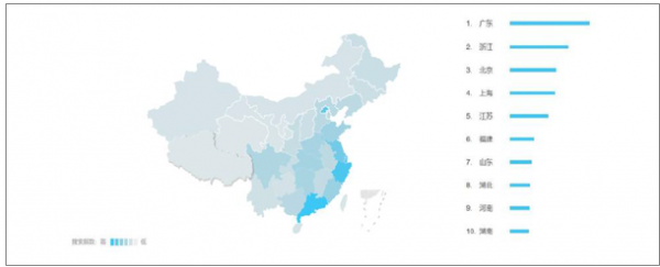 从地域上来看,按省份区分,广东、北京、上海、浙江等经济发达省份对于豆奶的关注度较高,而中西部等经济欠发达省份关注度相对较低;按城市区分,对豆奶关注度较高的城市也是集中于北上广深等发达城市。
