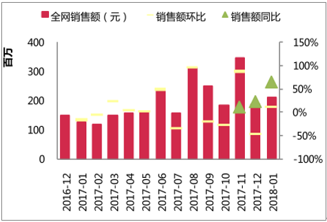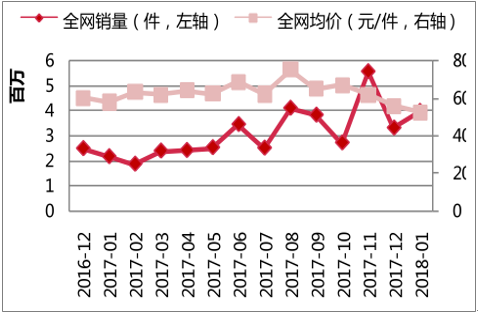 1月销售额 2.11亿,行业同比改善显著。2018 年1月,纯牛奶行业销售额2.11亿,1月销售额较去年同期+65.6%。拆分量价来看,销售额增长的驱动因素是量的增长。1月全网销量同比增+82.6%;均价下调-9.3%。