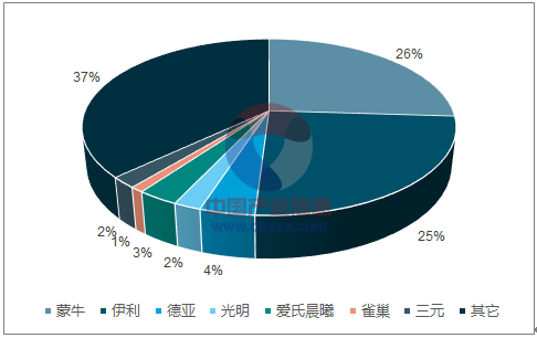 2018年1月纯牛奶行业各品牌销售额份额