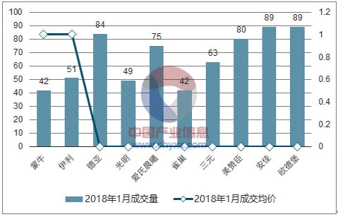 2018年1月纯牛奶行业各品牌销售额量价拆分