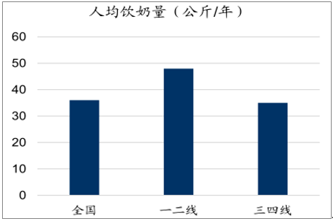 根据统计,2016年中国人均饮奶量为 36公斤/年,其中一二线城市的人均饮奶量为 48 公斤/年,但是三四线城市的人均饮奶量仅有15公斤/年,明显低于全国平均水平,具有较大的上升空间。另外,随着我国城镇化水平的提升,农村地区的收入和消费水平均有显著的提升,农村地区社会零售品总额增速自 2012 年起持续超过城市地区,消费能力显著提高。由于当前三四线城市乳品渗透率较低,未来乳制品进一步向三四线城市渗透将成为乳制品行业新的增长点。