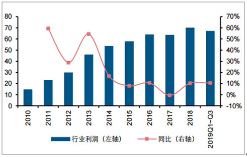 2019年前三季度乳制品行业收入1047亿元,同比增长11%,其中2019Q1/Q2/Q3行业收入增速分别为15%/8%/12%。2019年前三季度乳制品行业利润67亿元,同比增长11%,其中2019Q1/Q2/Q3行业利润增速分别为10%/12%/10%。