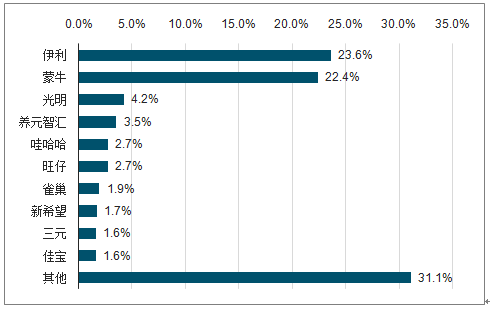 2018年中国乳制品品牌市场份额占比情况