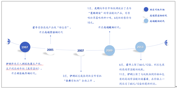 结构升级趋势明显,高端产品对标竞争。近10年乳制品市场边际增量逐年减少,存量市场的结构升级趋势明显。回顾近年乳制品发展,行业的单品经历了从利乐包纯奶-高端常温奶-高端常温酸奶的三阶段。