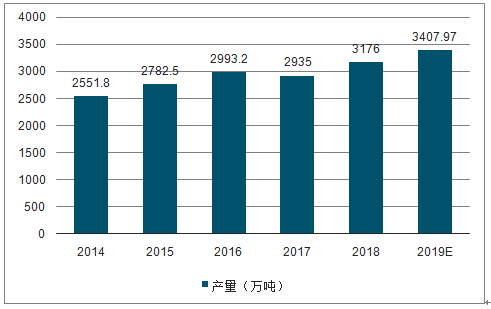 2014-2019年中国乳制品产量及预测情况