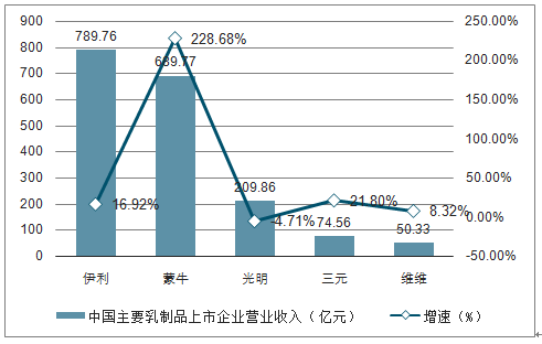 2018年中国主要乳制品上市企业营业收入统计及增长情况