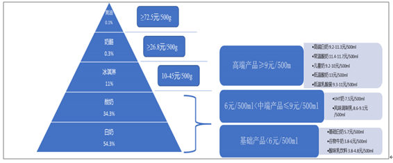 乳制品价格带整理,液态奶依旧为行业主流(白奶+酸奶)