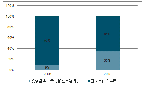 原奶供应已充分实现国际化。生鲜乳由于保质期较短、运输成本高等因素,主要由国内牧场及散户提供,也有部分由海外厂商直接将海外生鲜乳生产成成品运至国内销售。大包粉来源于两个方面,一是国内牧场在原奶供过于求的时期喷粉而成,二是海外原奶价格低于国内,通过进口大包粉补充国内需求,历年进口大包粉的规模远大于国内过剩奶源喷粉规模。综合看,进口奶源已经成为国内原奶的重要供应来源,18年约占原奶供应的35%。