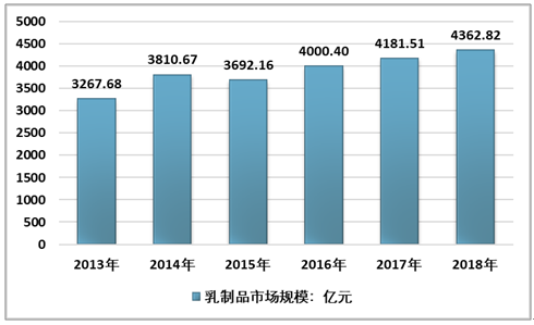 2013-2018年中国乳制品行业市场规模情况