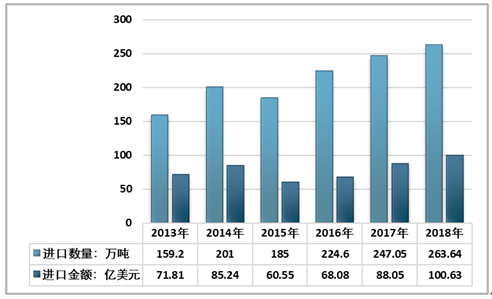 2016年我国乳制品进口量开始稳步提升,2018年全国乳制品进口量263.64万吨,同比增长6.72%;2018年全国乳制品进口金额100.63亿美元,同比增长14.29%。